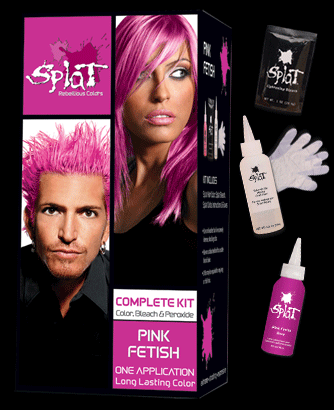 I’m sure you have already noticed, but in case you didn’t already know. I love color! One thing I am known for is having colors in my hair. But I can never get it to be the bright color that I am looking for. Even if I pay hundreds of dollars at a salon it never turns out quite right. Not only does my hair not accept color the way I want it, but it also hates bleach. I have not been able to afford to go get my hair done at a salon, so my hair has been paying the price and has been an awful yellowy-orange color that you get when the color washes out. So I was very excited when I found out that I was going to be reviewing Splat Hair Color. I received the Pink Fetish Hair Kit in the mail and immediately got to work on fixing my hair. The kit includes bleach, the pink hair color, and gloves. I was able to do the majority of the work by myself. I put the bleach in by myself and was surprised at how easily my hair had lightened. It normally takes hours even at a salon! Luckily for me I had my sister-in-law to help me with the pink dye so that I didn’t get it all over the house. And I’m glad that she was able to help me because we could tell right away that it was very bright. Which was perfect for my hair, but not for the walls. I left the pink in for an extra 30 minutes over what the instructions suggested so that it would be extra bright and last an extra long time. So after an hour we went to try to rinse it out. I know from experience with bright colors to rinse your hair with cold water to help the color stick. Luckily I had a helper to help me rinse out my hair otherwise it would have been stuck to everything, because rinsing it out made the dye splash everywhere! And even with her help my hands became pink. Even with pink hands I was very happy. I could tell immediately that my hair was a very bright pink. After drying I could confirm that my hair was a brighter shade of pink then any stylist had ever gotten it! I was very surprised not only that my hair looked awesome, but that I was able to do it at home, by myself (with help (: ), and for a fraction of the cost. I will definitely be using splat for all my hair coloring needs from now on! Hopefully I will be able to review some of Splat’s other hair care products for you soon! Happy coloring!